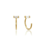 These elegant diamond style baguette lobe hoop earrings are designed to delicately curl around the back of your earlobe so only the baguette crystal and the very end of the hoop are visible. Made of 18ct gold plated sterling silver, these earrings really will complement any outfit and are perfect for stacking.