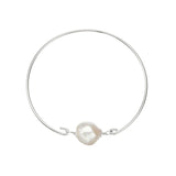 Our elegant solid sterling silver baroque pearl bangle is the perfect jewellery gift for her. This timeless piece will go with any outfit and is an ideal wedding accessory for any bride or her bridesmaids. Our Baroque Pearl Bangle is handmade in our London studio and our pearls are ethically sourced and produced. The large pearl unhooks from the bangle to be put on more easily.