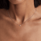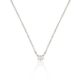 Our elegant silver triple baguette diamond necklace can be worn every day or saved for a special occasion, such as a wedding or evening party. Featuring three pavé set diamonds or crystals that add sparkle to any outfit. Pair them with any of our matching rings and earrings from the diamond-style baguette collection.