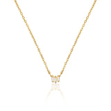 Our elegant gold triple baguette diamond necklace can be worn every day or saved for a special occasion, such as a wedding or evening party. Featuring three pavé set diamonds or crystals that add sparkle to any outfit. Pair them with any of our matching rings and earrings from the diamond-style baguette collection.