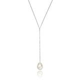 Silver Large Pearl Lariat Necklace