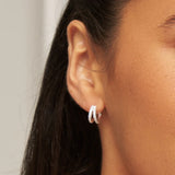 Silver Double Diamond Style Huggie Hoop Earrings