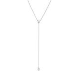 Our classic silver diamond style lariat necklace is an elegant accessory for any look. Depending on your selection, your lariat necklace will feature crystals or genuine diamonds that subtly move and shimmer in the light, adding sparkle to your outfit. The perfect gift for any bride or her bridesmaids.