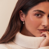 Crafted in gold-plated sterling silver with a secure hinged hoop, they offer comfort and stability throughout the day. Whether you're walking down the aisle or dressing up for brunch, these earrings bring a timeless charm to any ensemble.