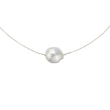 Pearl & Saga,s genuine extra large baroque pearl choker is made from a unique freshwater baroque pearl. This beautiful pearl is attached to a sterling silver chain, the perfect statement piece. Baroque pearls are pearls with an irregular non-spherical shape, these are some of the most fascinating organic gems you can find.