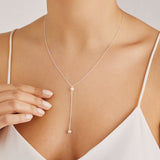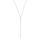 Our Solid White Gold Pearl Lariat Necklace is a beautifully modern choice for brides seeking elegance with effortless movement. Handmade in our London studio, featuring two freshwater pearls that gently drop, creating a graceful lariat silhouette.